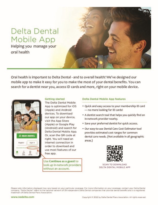 - Provider network – Starting in 2026, you’ll receive your best benefit using Delta Dental’s provider network. While you may still see any dentist, in-network providers generally mean lower costs. Based on past claims, about 85% of the dentists that members visited in the last year are in Delta’s network, so disruption should be limited. (see the mobile app instruction below)